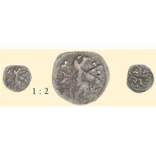 Dan I (1383-1386). AR Ban (14 mm, 0.21 g). Eagle with closed wings, holding a Greek cross in its beak, C in left field / central cross with flared terminals, trefoils between arms. Overstruck.