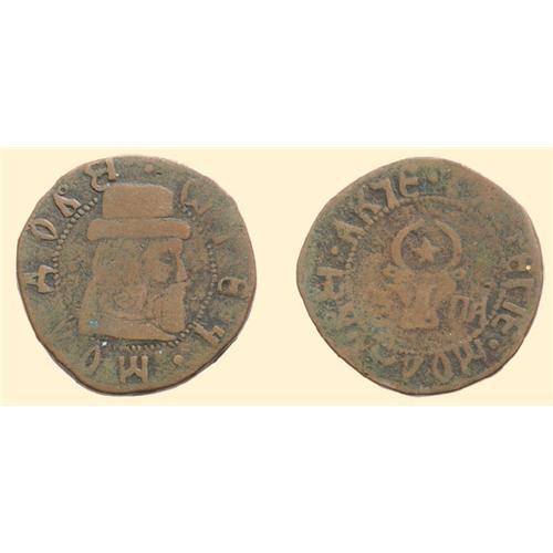 Ioan Voda cel Cumplit (1572-1574). AE Akcea (25 mm, 5.09 g). WTEb MO OBEI, head right, wearing hat / AKbE* XEPE IE*MOLBEI*, facing bull`s head, with star between horns. B. p. 90, 801.