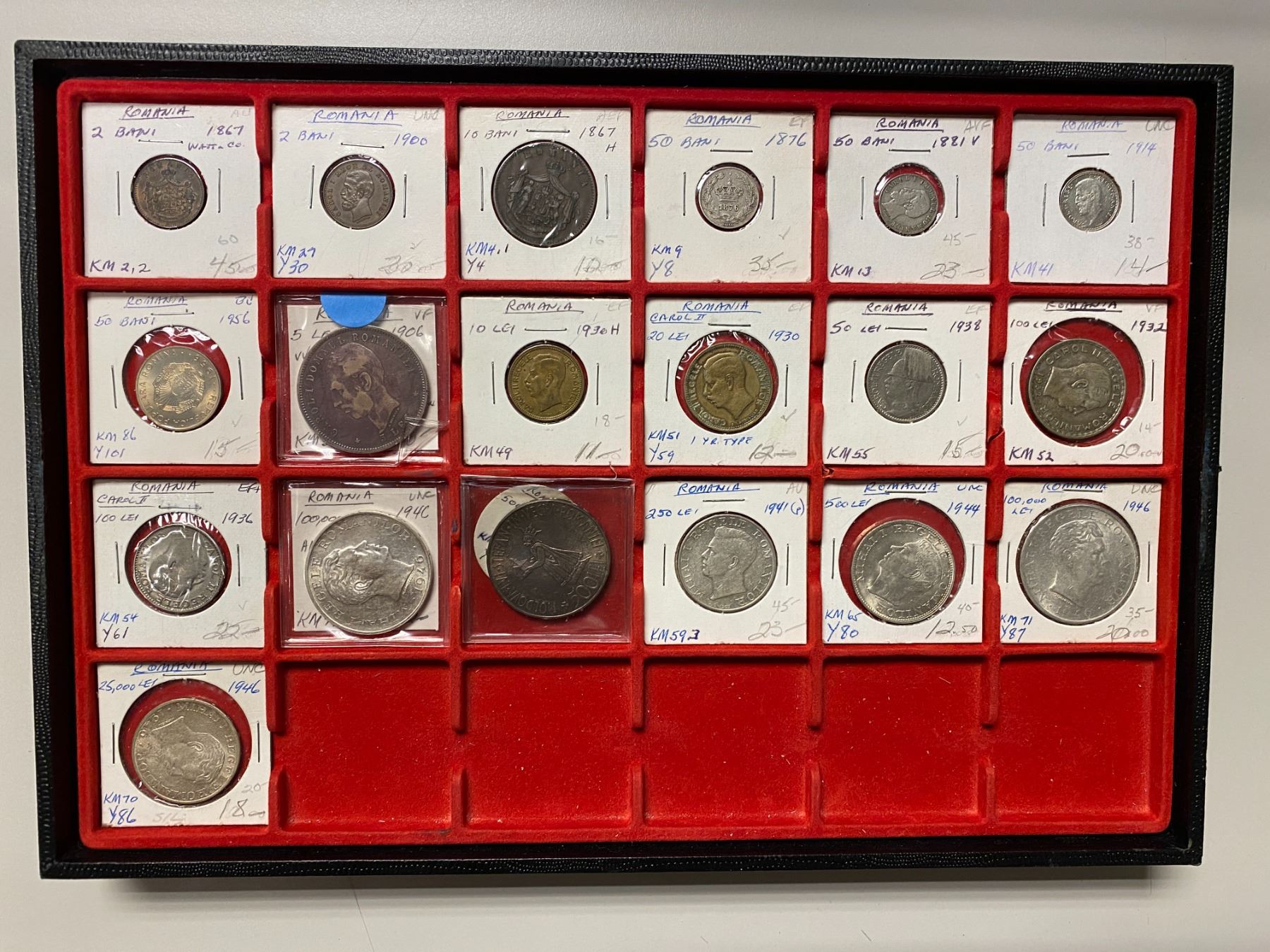 ROMANIA: LOT of 19 coins, including 11 silver, 5 of which are crowns, with several high grade and desirable types such as a 1906 5-lei in VF and a 1941 250-lei (AU); retail value $600, lot of 19 pieces.