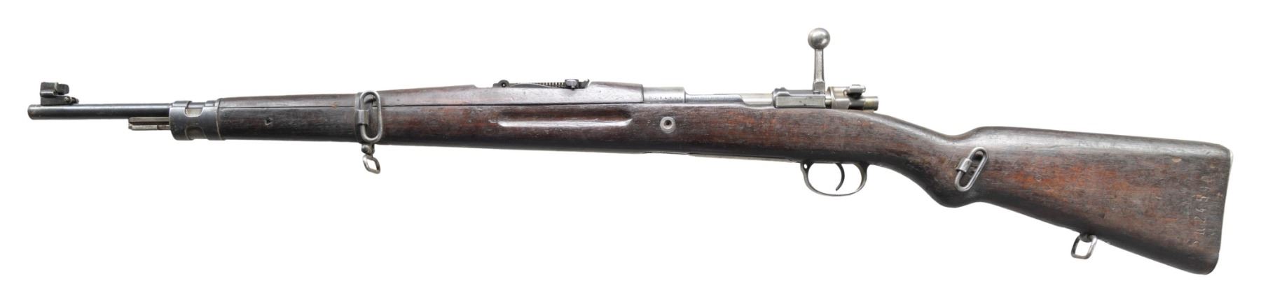Cal. 8mm Mauser. S# SR24590. Bbl. 23 1/2" with Century import marking. Blade front sight with Czech protective ears. Tangent rear sight graduated to 2000m. Matching numbers on stock, trigger guard & receiver. Bolt number scrubbed. Receiver crest also scrubbed. Blued finish. Walnut stock with bottom & left side sling swivels. No cleaning rod present. CONDITION: stock has a dark appearance with a few light chips, scattered dings, handling marks & scratches. Metal retains 30% arsenal rework blue with overall fading to gray, scattered edge wear, dings & some light pitting. Action functions properly when hand cycled. Muzzle has been counterbored a few inches, bore otherwise shows scattered pitting & oxidation but evident rifling. (25-3873/MJC). CURIO. $300-500.