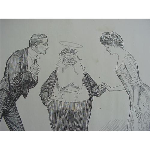 This is an original 1901 Life Publishing Co print by one of my most favorite artists Charles Dana Gibson. Entitled HIS CHRISTMAS GIFT, it shows the famous Gibson Girl beauty and the famous Gibson handsome young man proposing to her while Santa Claus holds her hand. Romantic, beautiful and 103 years old it would be wonderful to frame. It measures 17 ¼ inches by 11 ¼ inches. A beautiful print by one of the most Romantic American artists and illustrators.