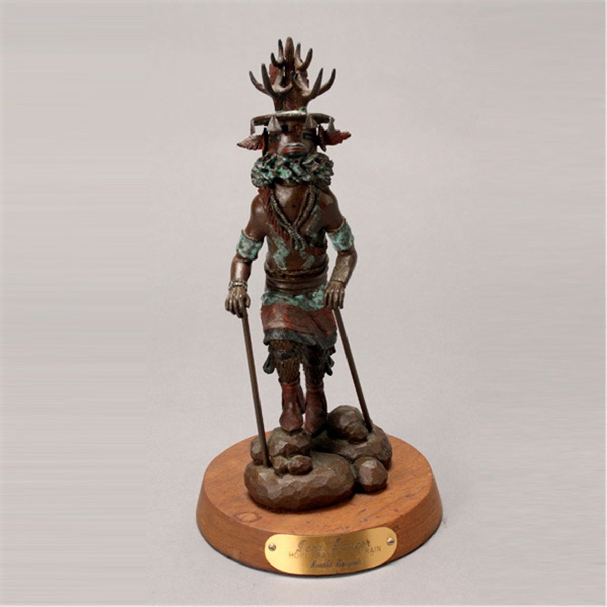 RON HONYOUTI.  Painted bronze of Deer Dancer.  Edition of 25.  1985.  Height 9 1/4 inches.  In very good condition.