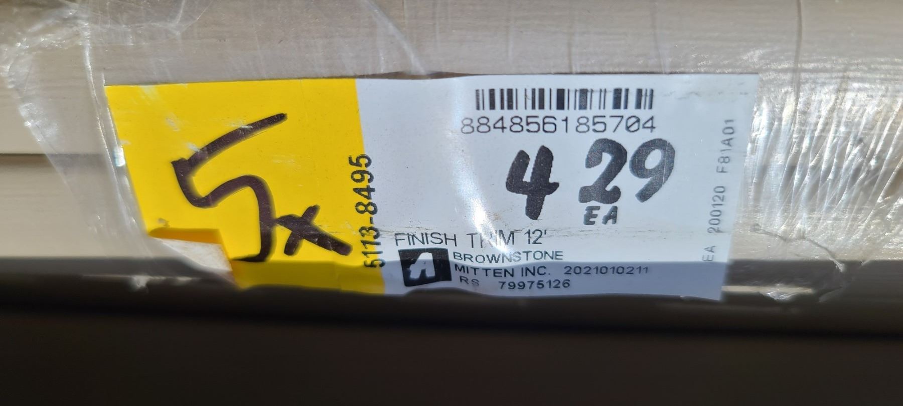RONA SIDING FINISHING TRIM 12 FT COFFEE BEAN X 43 VALUE $230