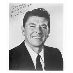 <b>1013. RONALD REAGAN </b>Excellent I.S.P. as Governor, 8" x 10" b/w, a smiling, chest, up view, boldly inscribed and signed at upper-left. Near fine.<b>$250-350</b>