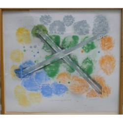 RONALD, William Smith, R.C.A., 1926-1998. "Mrs. Stickney's Orchard". Mélange sur lithographie. Signée, titrée et datée "81". Mixed media on lithograph. Signed, titled and dated "81". 30" x 34" - 76.2cm x 86.4cm. $800/1200