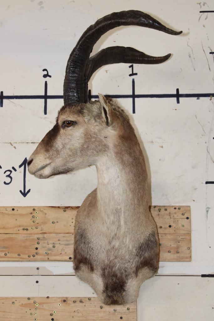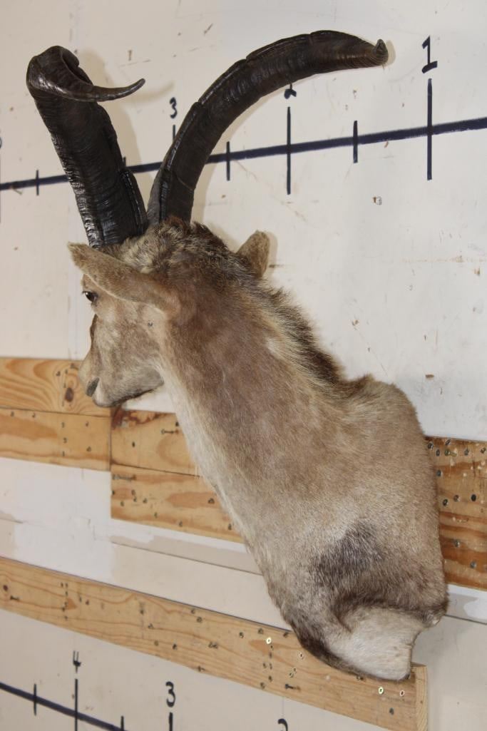 Very Nice RONDA IBEX Shoulder Mount. The Right Horn measures 22" Long and the Left Horn measures 22.5" Long. It was Taken in Spain 2007 and is in Good Condition. TAXIDERMY