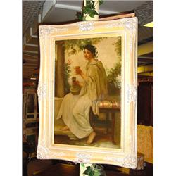 RONGIER (European 20th century) oil on canvas; 36 inches by 24 inches; "Portrait of a Seated Young Greek Girl"; signed lower right