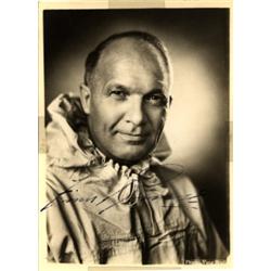 <b>1093. FINN RONNE</b> (1899 - 1980) American explorer with Byrd in the Antarctic and also led Antarctic explorations. Striking S.P. 3 1/2" x 5" b/w showing the explorer chest, up in arctic gear, nicely signed in blue ink across the image. Fine.<b> $100-150</b>