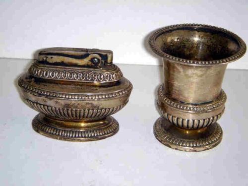 RONSON "QUEEN ANNE" SILVER TABLE LIGHTER & ASHTRAY