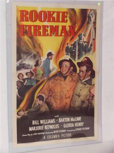 ROOKIE FIREMAN MOVIE POSTER STARRING BILL WILLIAM, BARTON MACLANE and OTHERS; COPYRIGHT 1950, COLUMBIA PICTURES (41" X 27") - FOLD LINES and SMALL CENTRAL TEAR, 50/482;