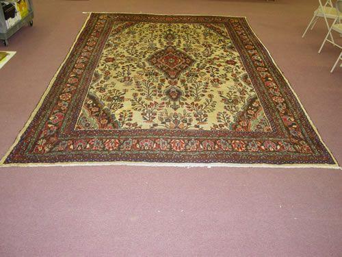 ROOM SIZED KASHAN PERSIAN RUG (8 FT. 6" X 12 FT. 4") - STAINS, WEAR & IMPERFECTIONS