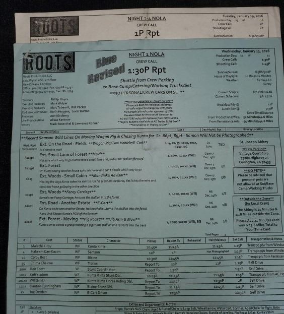 "ROOTS" Call Sheet Starring: Malachi Kirby, Hakeem Kae Kazim, Colby Best