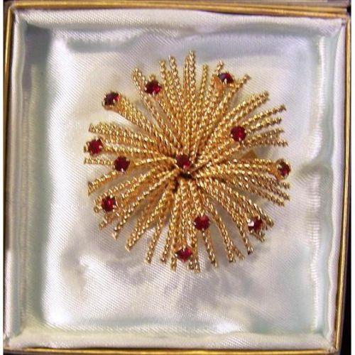 ROPE SPRAY LAPEL PIN - 10 RUBY STONES