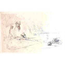 ROPS, Félicien.- Juillet. Eau-forte et pointe sèche, 162 x 250 mm, japon à bonne marges (325 x 497 mm) (bords latéraux lég. usés, pet. taches au bord g.). Retenue par le bord sup., sous passe-partout de papier.