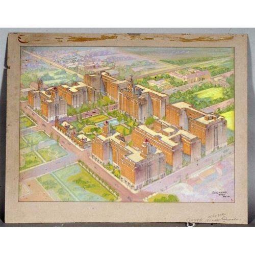 ROSARIO CANDELA, architectural drawing, 18"X25" watercolor signed and dated 1932