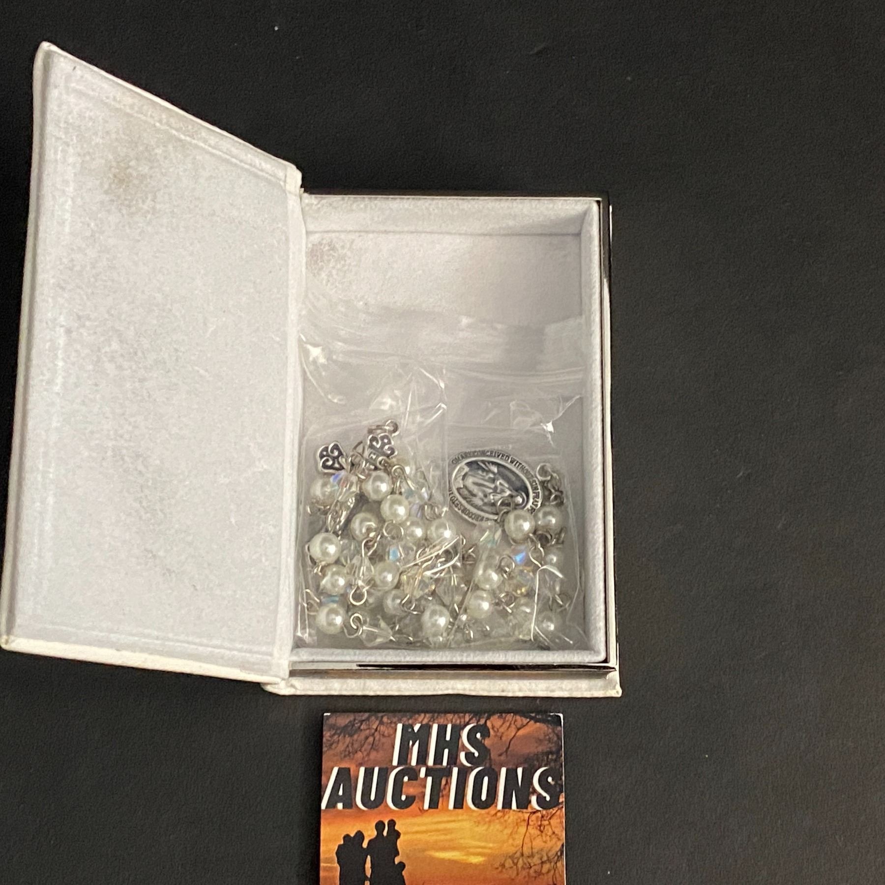 ROSARY BOX WHITE WITH ROSARY FROM THINGS ENGRAVED