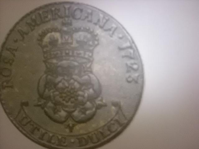 ROSE AMERICANA PENNY 1723 GRADED 56 . DARK BROWN SOME BRASS A FEW DINTS OTHER THAN THAT A GREAT COIN