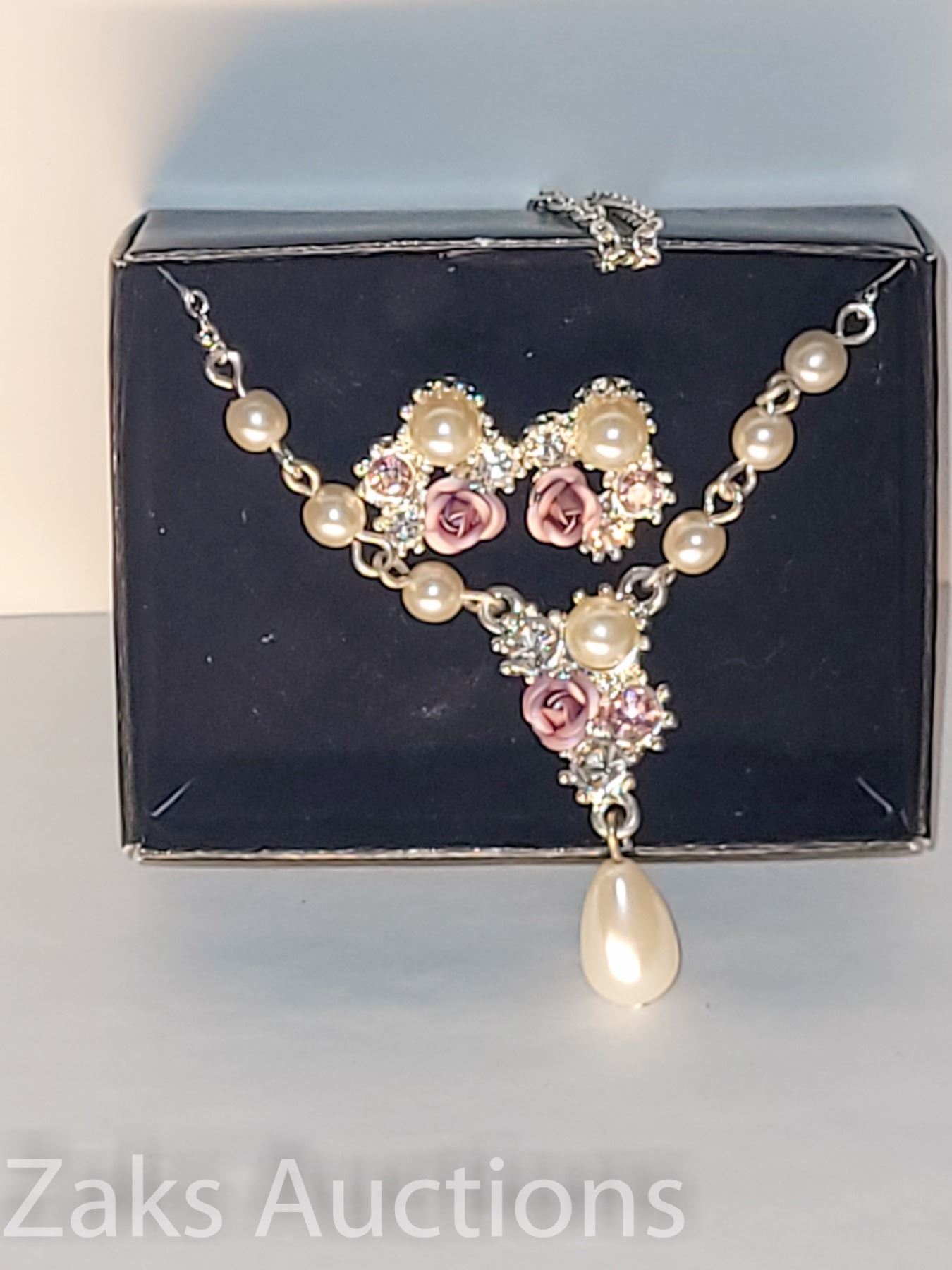 SUPER CUTE AND FEMININE SET. EARRINGS ARE FOR PIERCED EARS. THE PEARL IS SYNTHETIC.