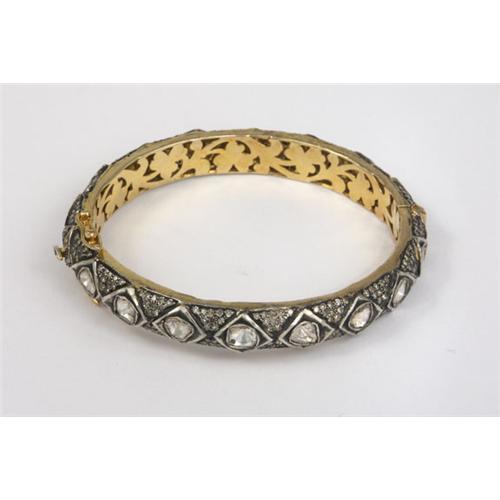 BRACELET: Exotic gold and silver bangle bracelet set with rose cut diamonds. Appraisal included.