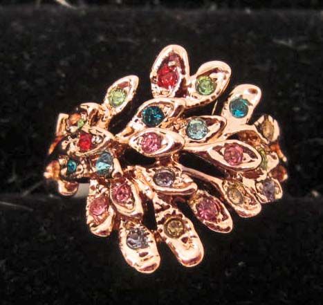 ROSE GOLD PLATED MULTI COLOR AUSTRIAN CRYSTAL RING SIZE 8"