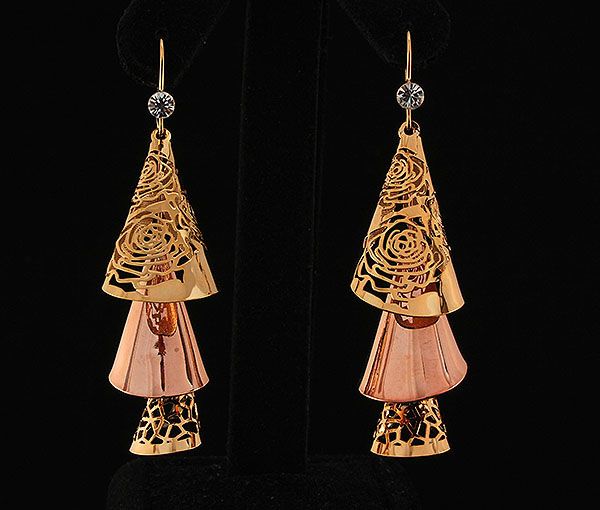 ROSE & GOLD PLATED PARTY DROP EARRINGS 8.83g **|**|** 2.55 INCHES LONG ROSE AND GOLD PLATED LONG DROP HOOK EARRINGS WITH CZ DIAMOND ; MSRP: $100