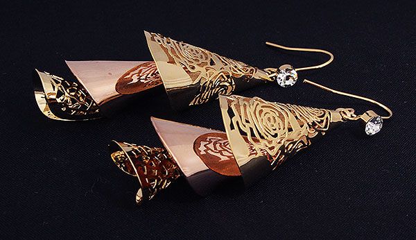 ROSE & GOLD PLATED PARTY DROP EARRINGS 8.83g **|**|** 2.55 INCHES LONG ROSE AND GOLD PLATED LONG DROP HOOK EARRINGS WITH CZ DIAMOND ; MSRP: $100