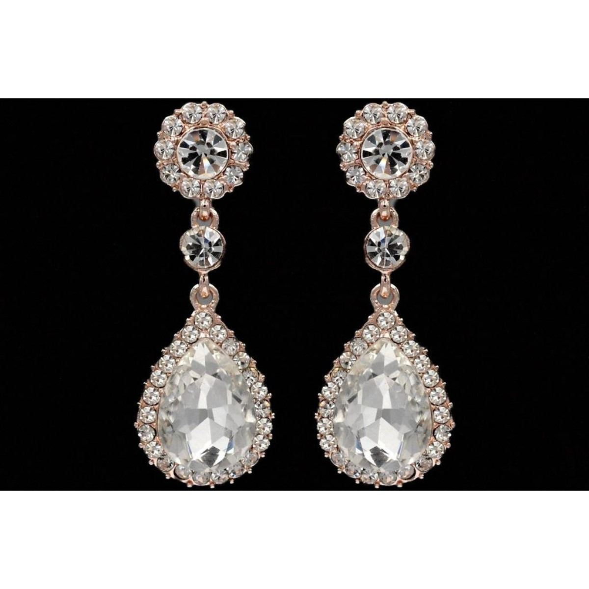 Material: Rhinestone. Style: Drop/Dangle Fastening: Butterfly. Metal: Rose Gold Plated Main Color: Clear.
