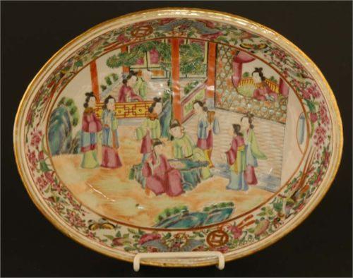 "ROSE MEDALLION SERVING DISH 12 3/8"" long circa 1830 packing and shipping (excluding insurance) $30"