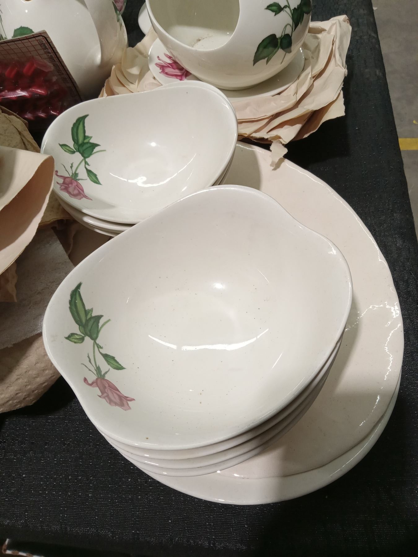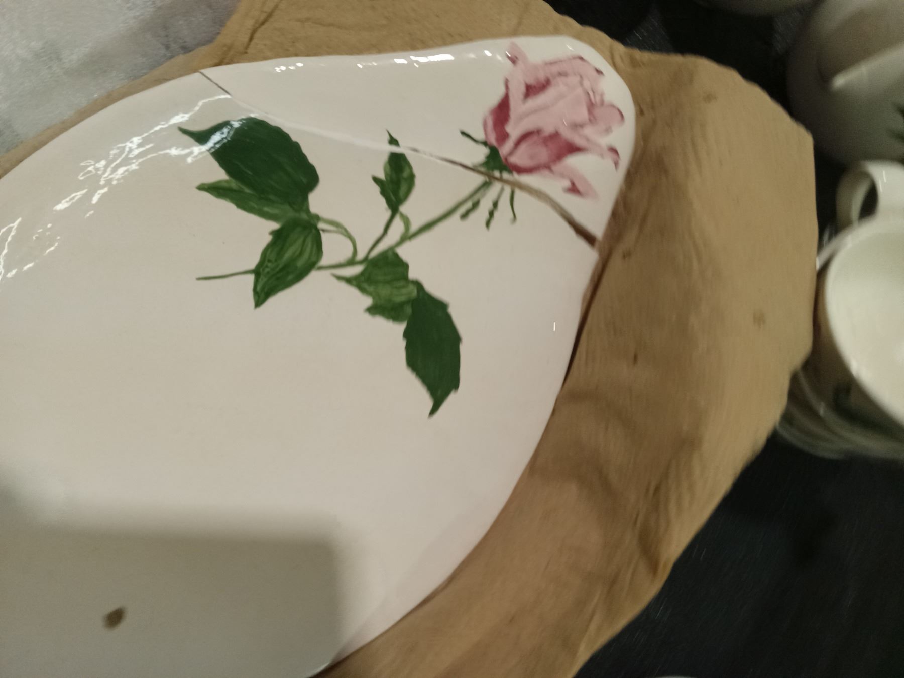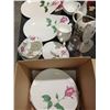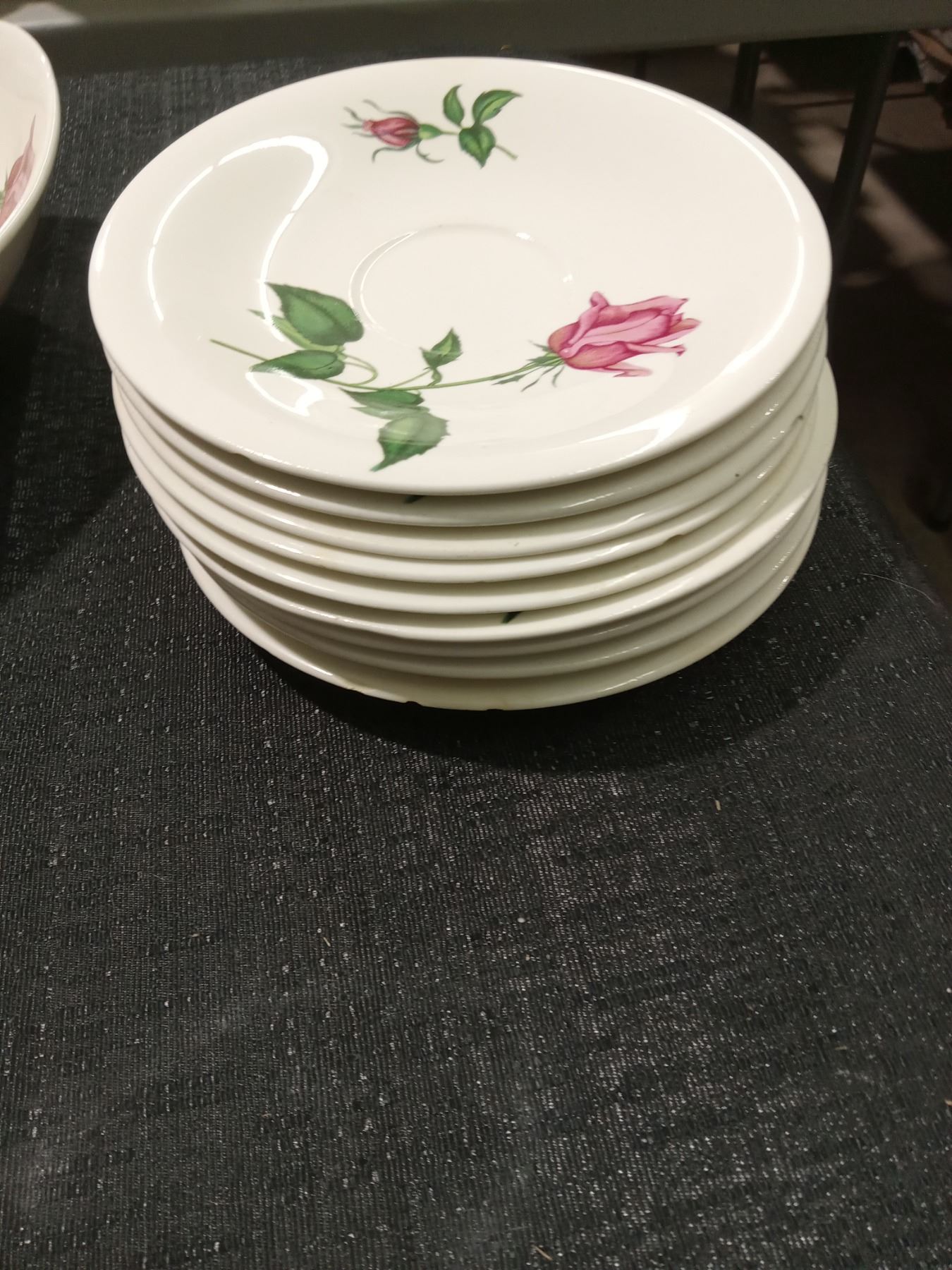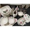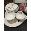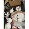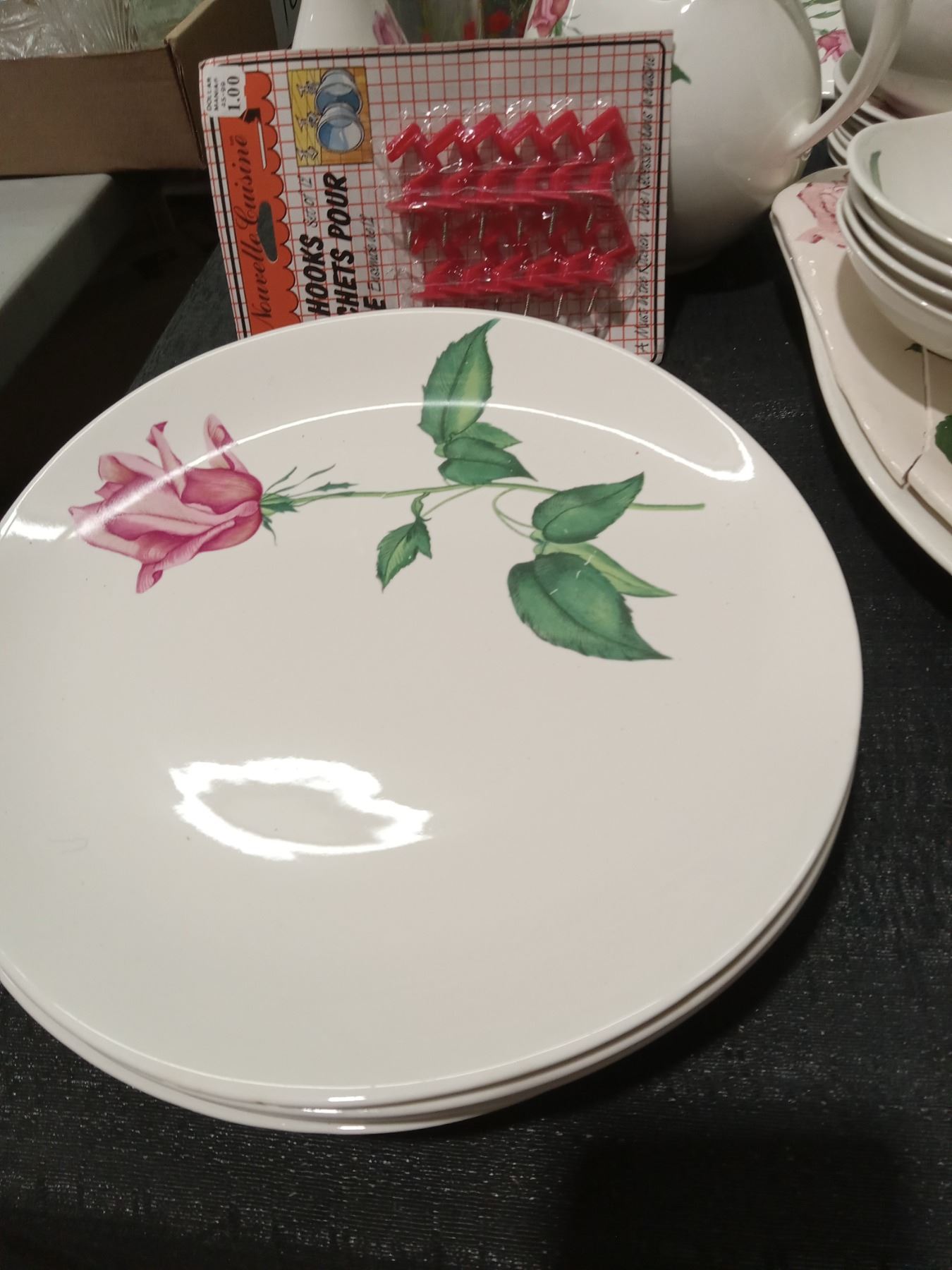 ROSE PATTERNED DISHES, GLASSES, SERVING SET & CHAMPAGNE FLUTES