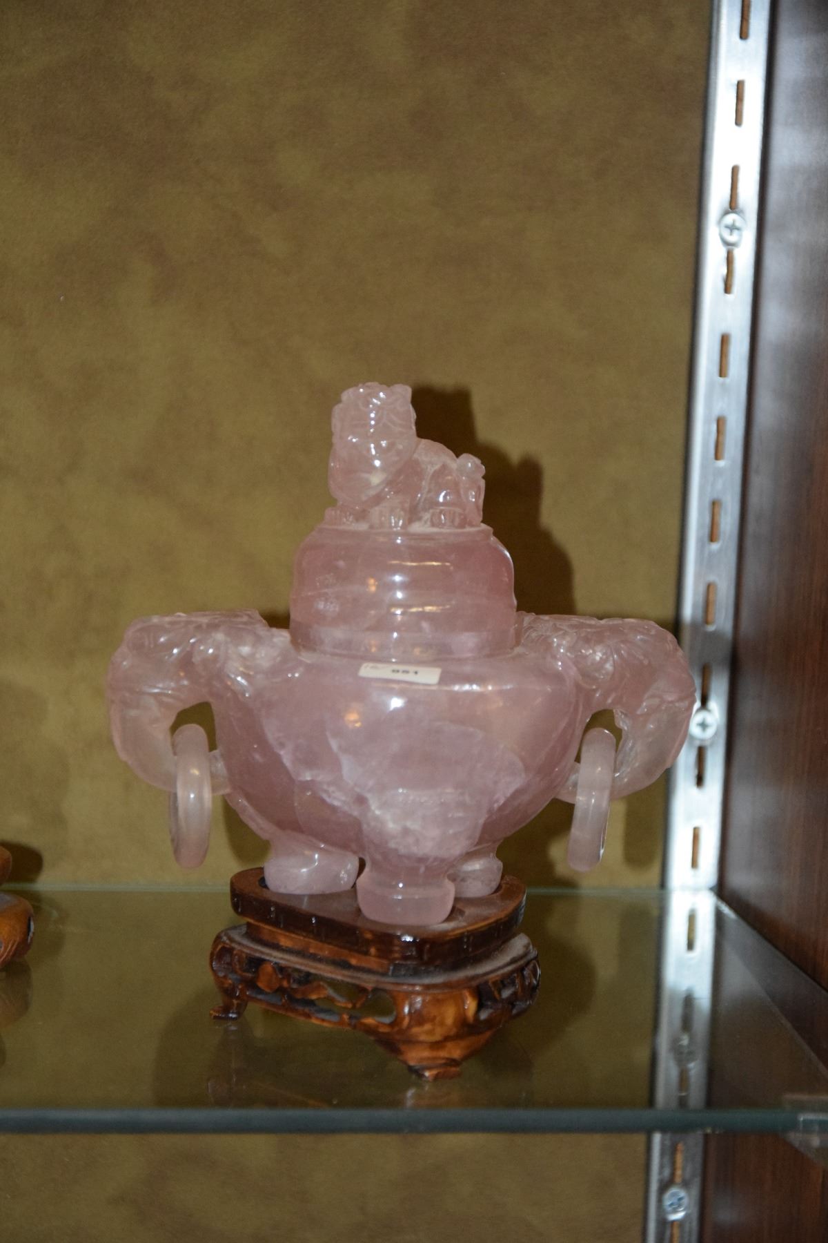 ROSE QUARTZ FU DOG CENSER W/STAND