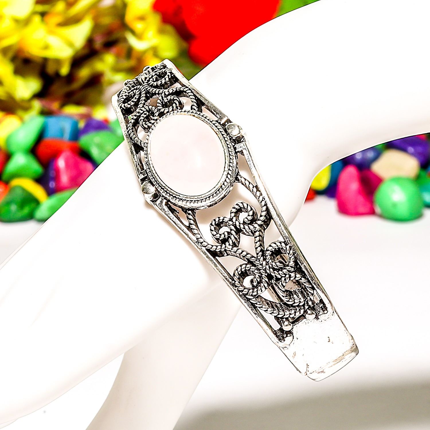 NATURAL ROSE QUARTZ GEMSTONE SILVER PLATED BRACELET BANGLE JEWELRY , Jewelry Type : Bangle Bracelet , Gemstone : Rose Quartz , Gemstone Shape : Oval , Gemstone Color : Pink , Gemstone Size : 13x18mm , Metal : White Brass , Metal Purity : Silver Plated , Total Weight : 27.50 Gram , Product Code : SGJMXBAN1009