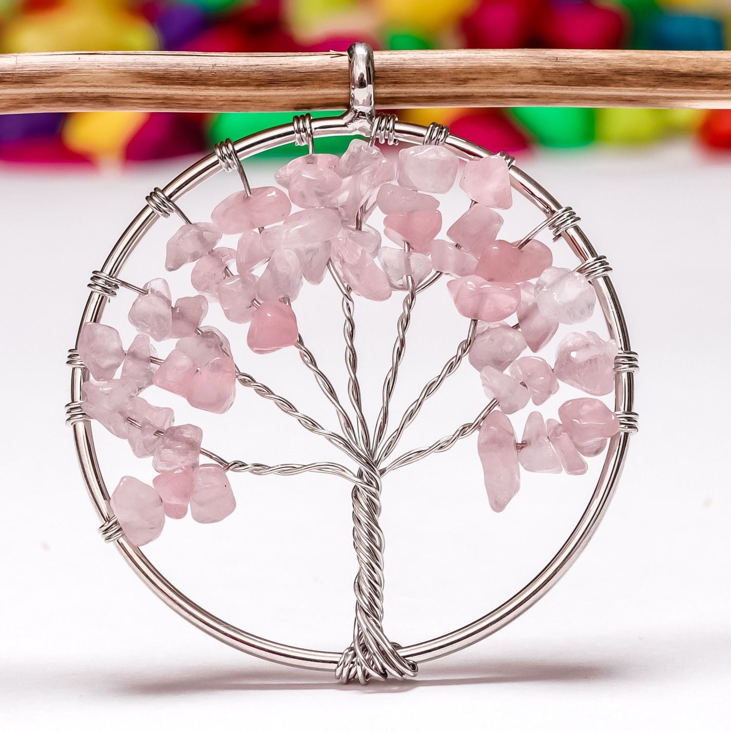 ROSE QUARTZ GEMSTONE TREE OF LIFE CHARM SILVER PLATED PENDANT JEWELRY , GEMSTONE - ROSE QUARTZ , PENDANT SIZE - 2 INCHES , QUANTITY - 1 PIECE PENDANT , WEIGHT - 11.200 GRAM
