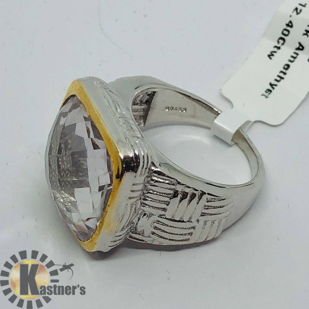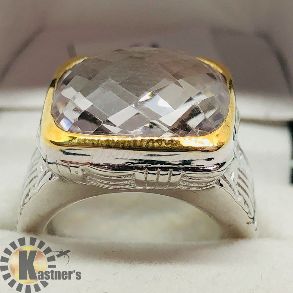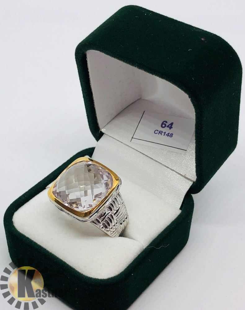 #64-CR173:M50: BRASS ROSE QUARTZ (12.5CT) MEN'S RING. - JEWELRY.