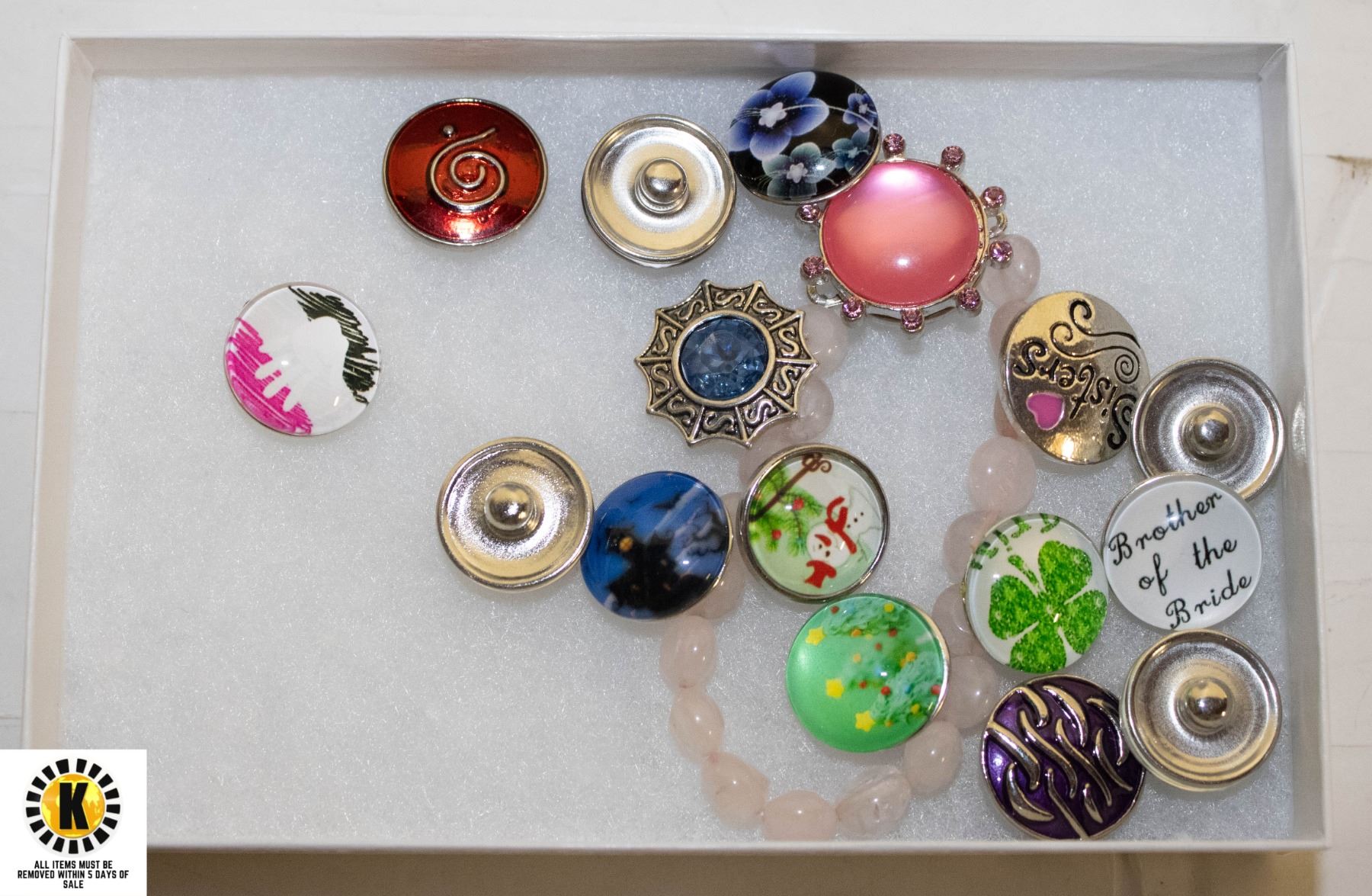 ROSE QUARTZ SNAP CHARM BRACELET & 16 SNAP CHARMS