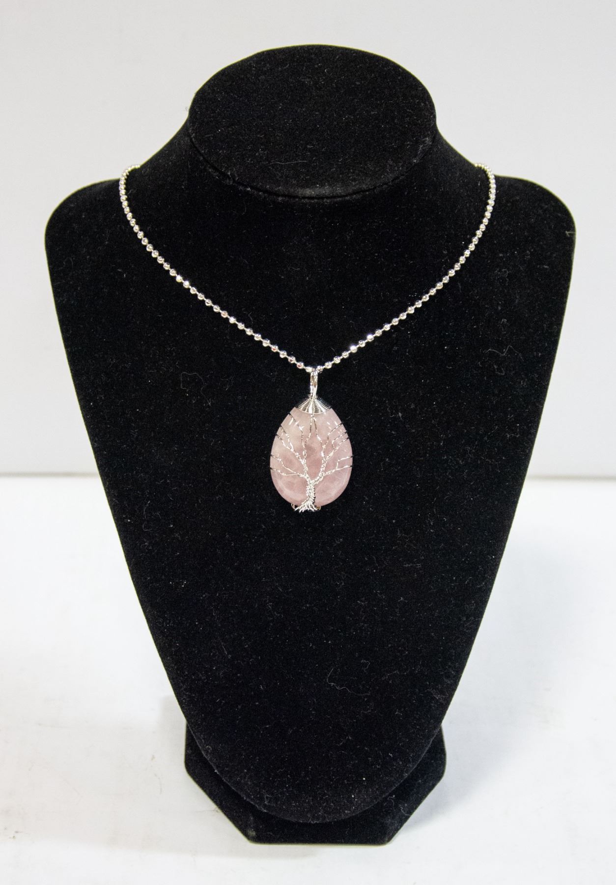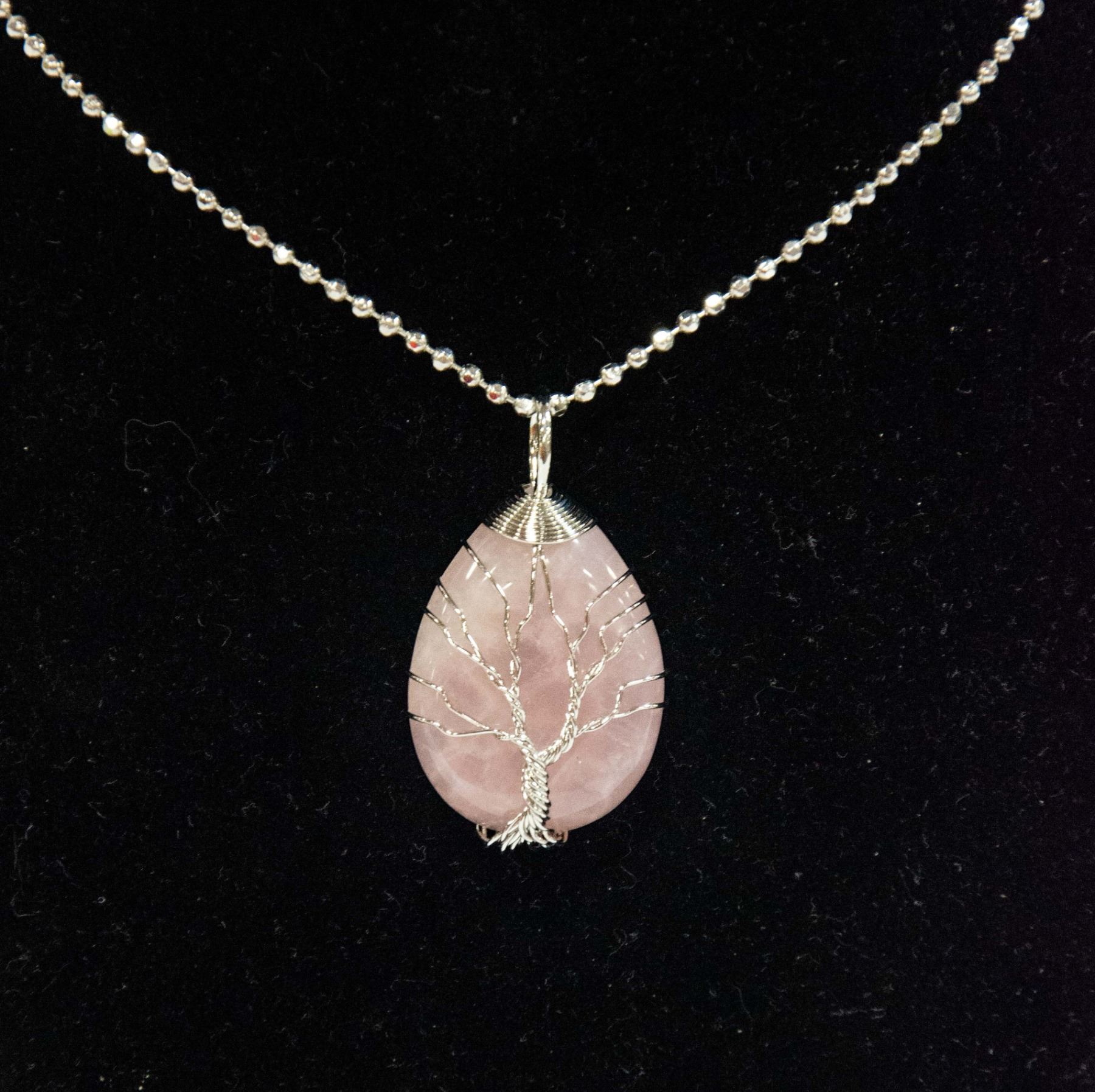 ROSE QUARTZ STONE TREE OF LIFE NECKLACE