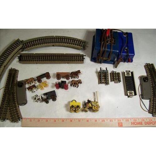 ROSEBUD STEPHEN'S "ROCKET" MINIATURE HO ENGINE WITH 1 CAR WITH TRACK & TRANSFORMER WITH LOTS OF SIDELINE ACCESSORIES