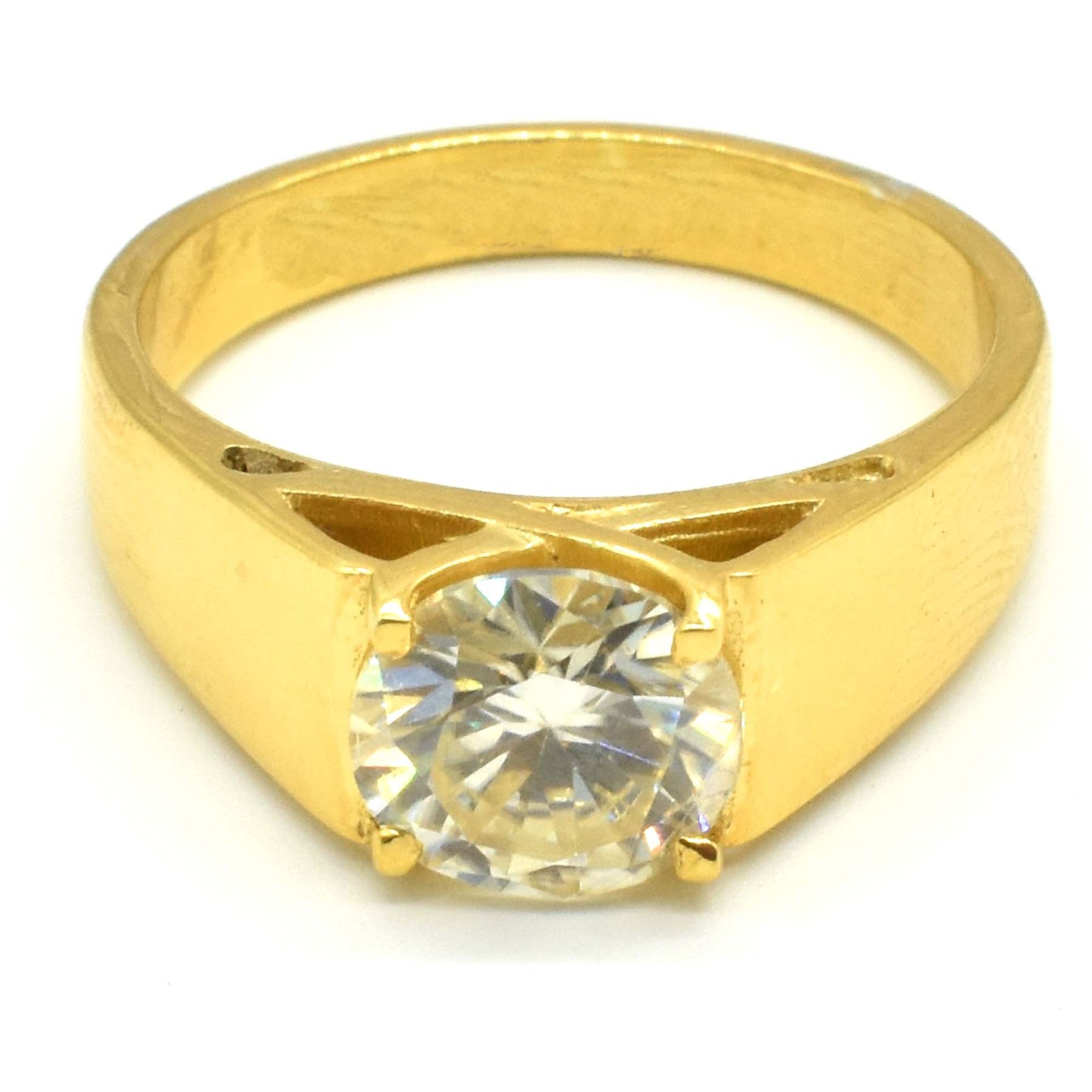 (ROUND 8.5 MM)(6.25CT) GOLD 1 MICRONE RHODIUM PLATED RING (~WEIGHT 6.25G) SIZE 10***ITEM(S) LOCATED IN LETHBRIDGE ALBERTA