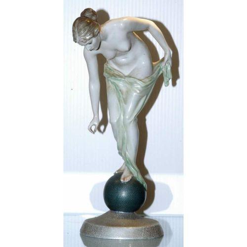 ROSENTHAL FIGURE OF A DANCER after a model by Ernst Wenck, 12" high CONDITION REPORT: no problems PACKING AND SHIPPING: We offer packing (double boxed in most cases) and shipping of this item within the Continental United States by USPS or UPS (our choice- boxes over 30lbs may be recalculated based on buyer's location), NOT INCLUDING INSURANCE (it will be added when we know the sales price) for $30