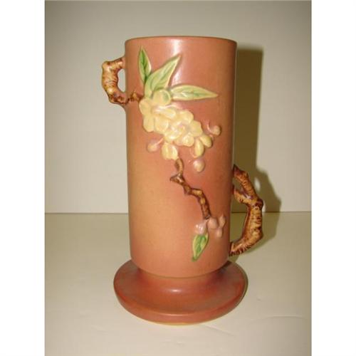 ROSEVILLE PINK APPLE BLOSSOM VASE 387-9”. Some minor crazing and graphite marks.