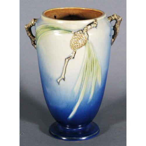 ROSEVILLE "BLUE PINECONE" VASE, 10" high,