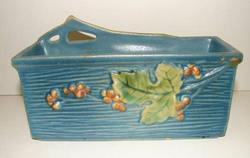 ROSEVILLE BUSHBERRY, 1948 PLANTER. Shows one spot of green paint at top corner. Marked on bottom “Roseville/U.S.A./383-6”. 4” H
