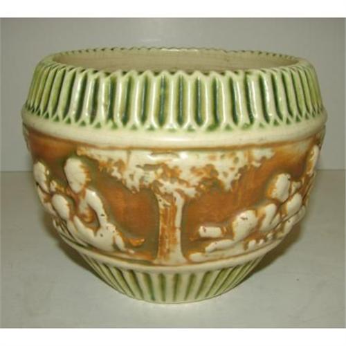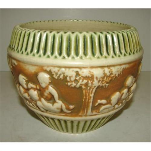 ROSEVILLE DONATELLO, 1915 PLANTER. Shows crazing throughout. No mark. 5” H