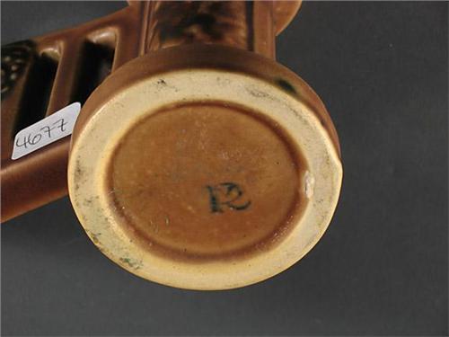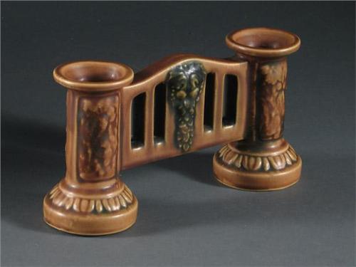 Roseville Florentine candelabrum or vase, chip at unglazed inner edge at underside and mold flaw at underside of bridge. Second quarter 20th c. Approx. 4.75'' H