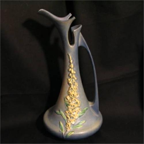 ROSEVILLE FOXGLOVE BLUE EWER #6-15", 1942, EXCELENT CONDITION.