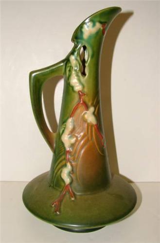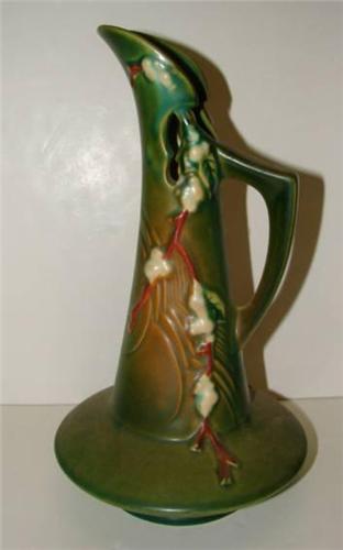 ROSEVILLE SNOWBERRY, 1946 EWER. Shows one small chip at base. Marked on bottom “Roseville/U.S.A./ITK-10”. 10.5” H