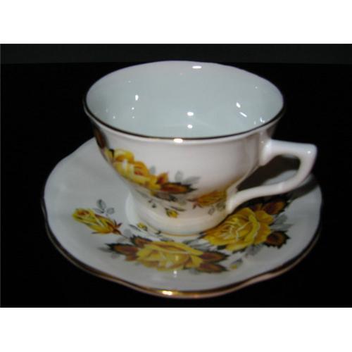 <tr><td><font size="2" face="Arial, Helvetica, sans-serif"><strong><font color="#000033">Title:</font></strong>ROSINA yellow rose porcelain cup & saucer of</font></td></tr>