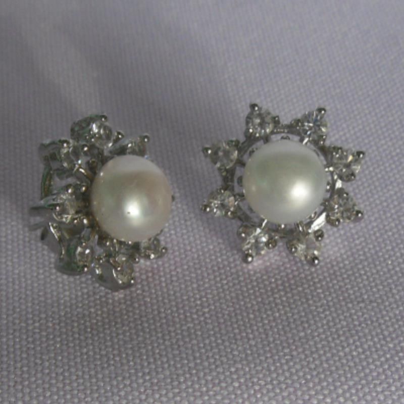 ROSITA CZ WHITE PEARL EARRINGS; AUTHENTIC PHILIPPINE PE **|**|** ROSITA CZ WHITE PEARL EARRINGS; AUTHENTIC PHILIPPINE PEARL; METAL-SILVER ; MSRP: $300