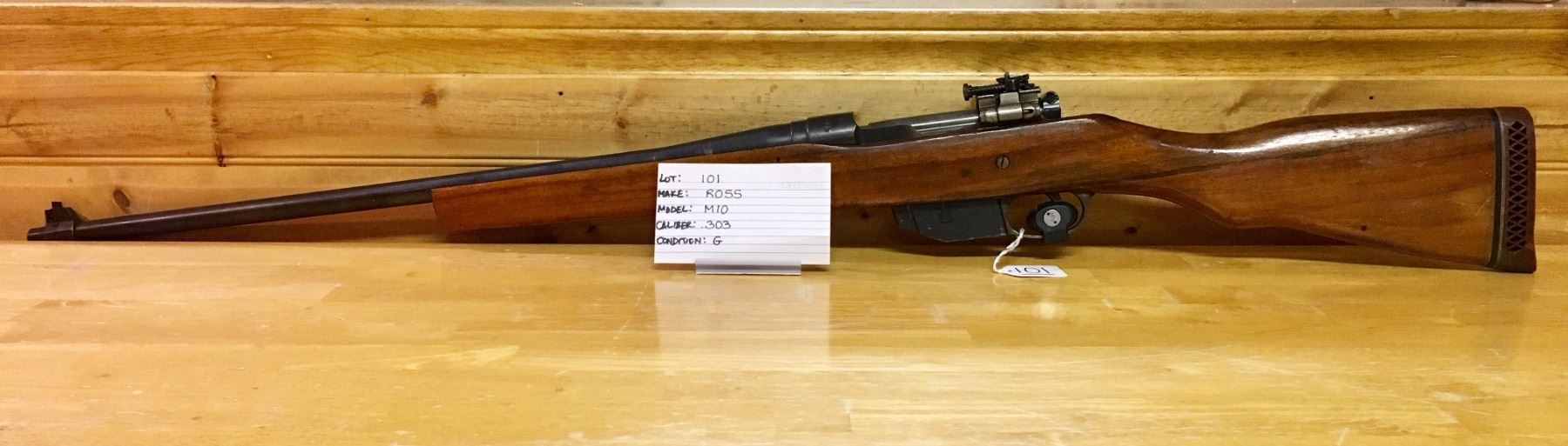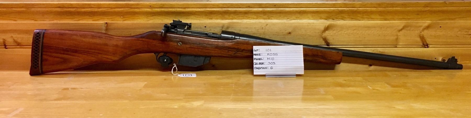 LOT: 101 MAKE: ROSS MODEL: M10 CALIBER: .303 CONDITION: G, SPORTERIZED S/N: NONE