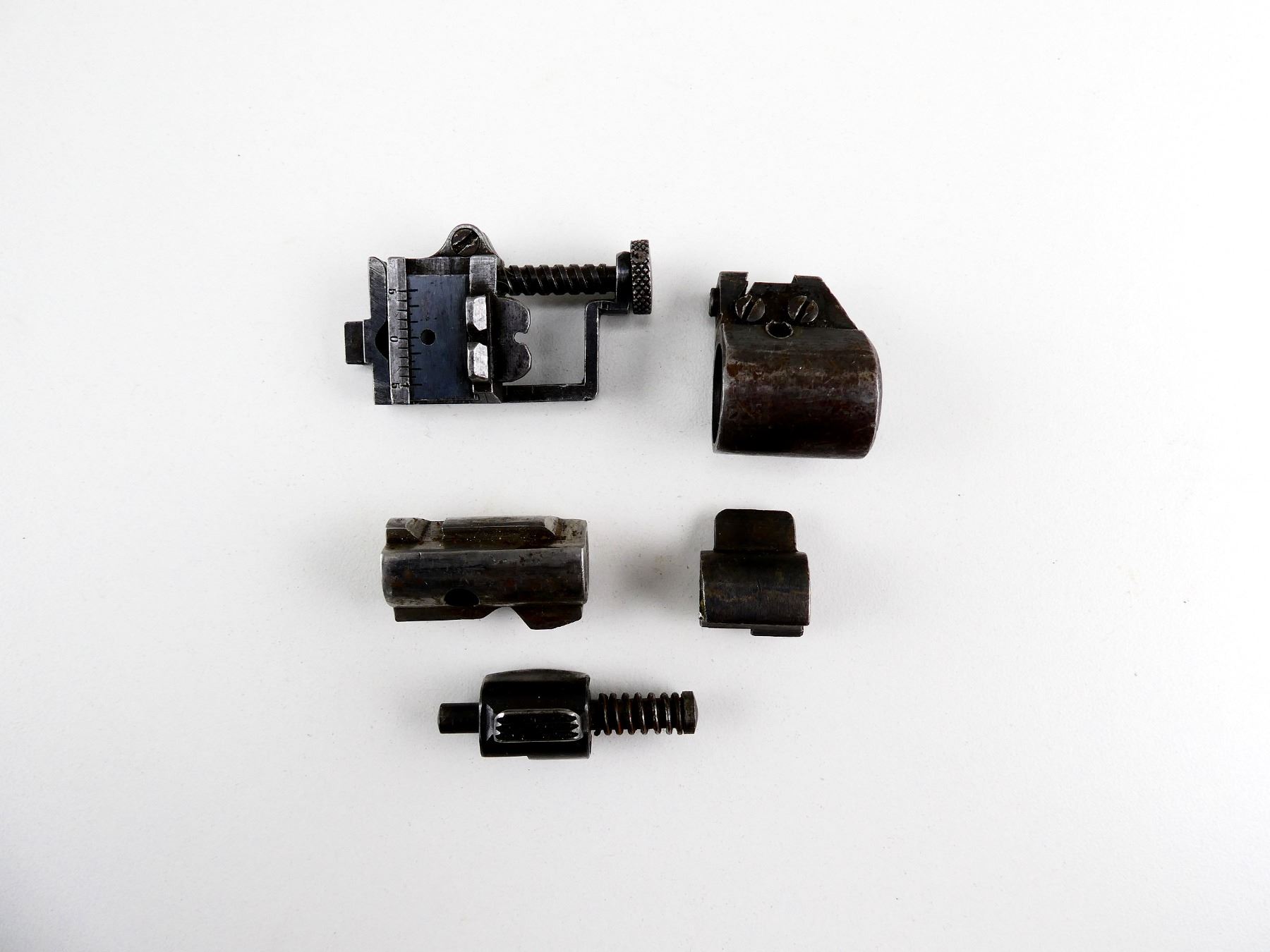 FITS .303 BR MODELS, LOT INCLUDES; (1) REAR SIGHT, COCKING PIECE, FRONT SIGHT BASE WITH FOUR SCREWS, (2) BOLT STOPS, ETC. MAY REQUIRE FITTING. SEE PHOTOS.