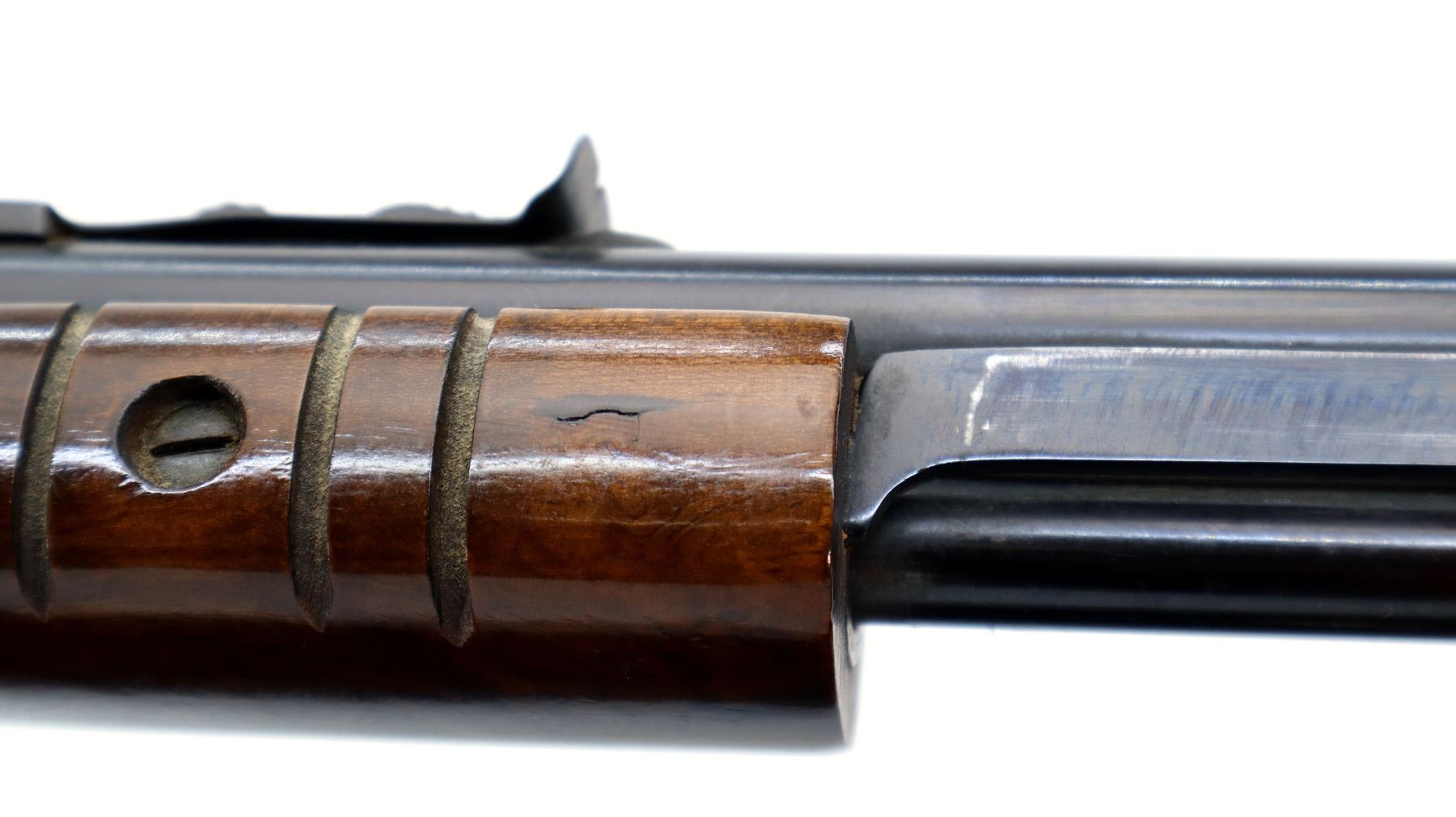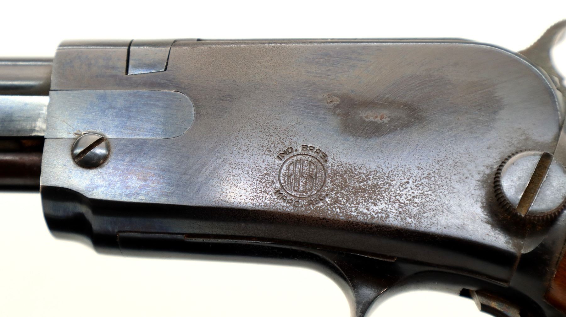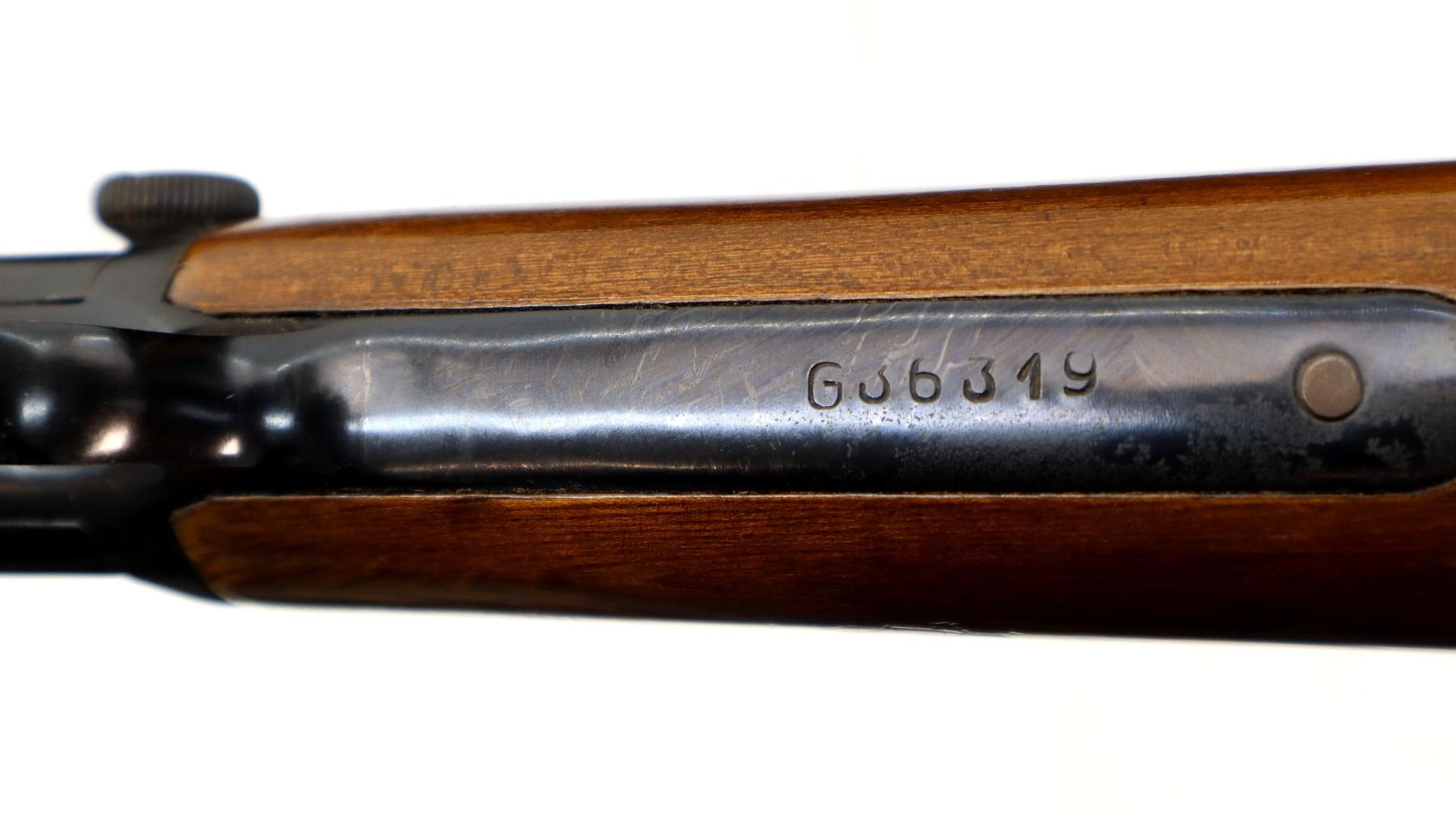 Wear: Metal finish shows some light rust speckles, scratches, handling marks and wear. Stocks show some marks, scratches and wear.